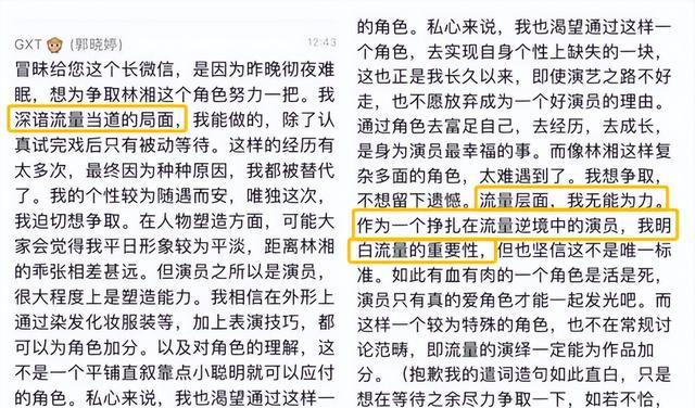 是以这也就导致说真话的演员越来越少,而郭晓婷说了真话就成了被东说念主针对的特例。