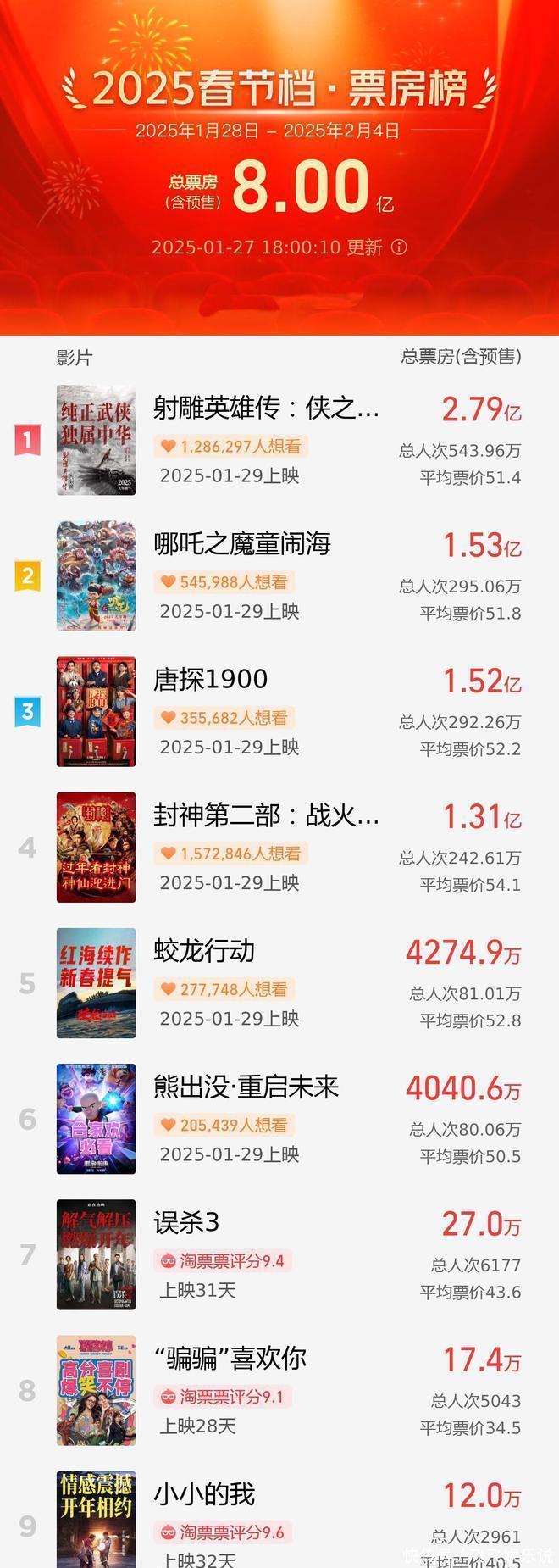 2025年春节档(1月28日-2月4日)
