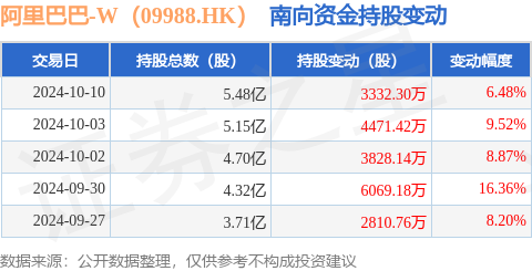 本站音信开yun体育网,10月10日南向资金增执3332.3万股阿里巴巴-W(09988.HK)。近5个来往日中,获南向资金增执的有5天,累计净增执2.05亿股。扫尾现在,南向资金执有阿里巴巴-W(09988.HK)5.48亿股,占公司已刊行以前股的2.85%。