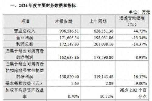 但是,尽管营收发达强劲,公司归母净利润为16.26亿元,同比下跌8.93%。净利润下滑的主要原因是公司在研发方面的大幅参加,2024年研发参加达到24.52亿元,同比增长94.31%,占买卖收入的27.05%。此外,2023年公司出售部分股权得回的收益在2024年并未再现,进一步影响了净利润发达。