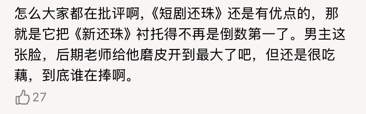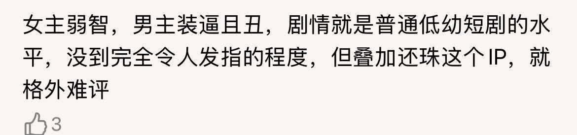 有位网友给出了一个中肯的评价,“剧情即是往往低幼短剧的水平,没到总共令东谈主发指的进度,但访佛还珠,就荒谬难评。