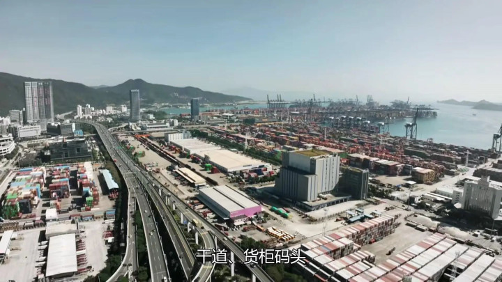 预报中,有一段翻江倒海的全景镜头,“干谈、货柜、船埠,