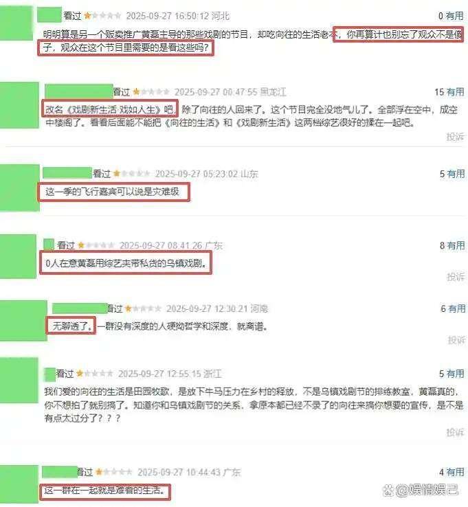 挑剔区里尽是 “不如更名叫乌镇戏剧宣传片”“黄磊别霍霍这节目了”。