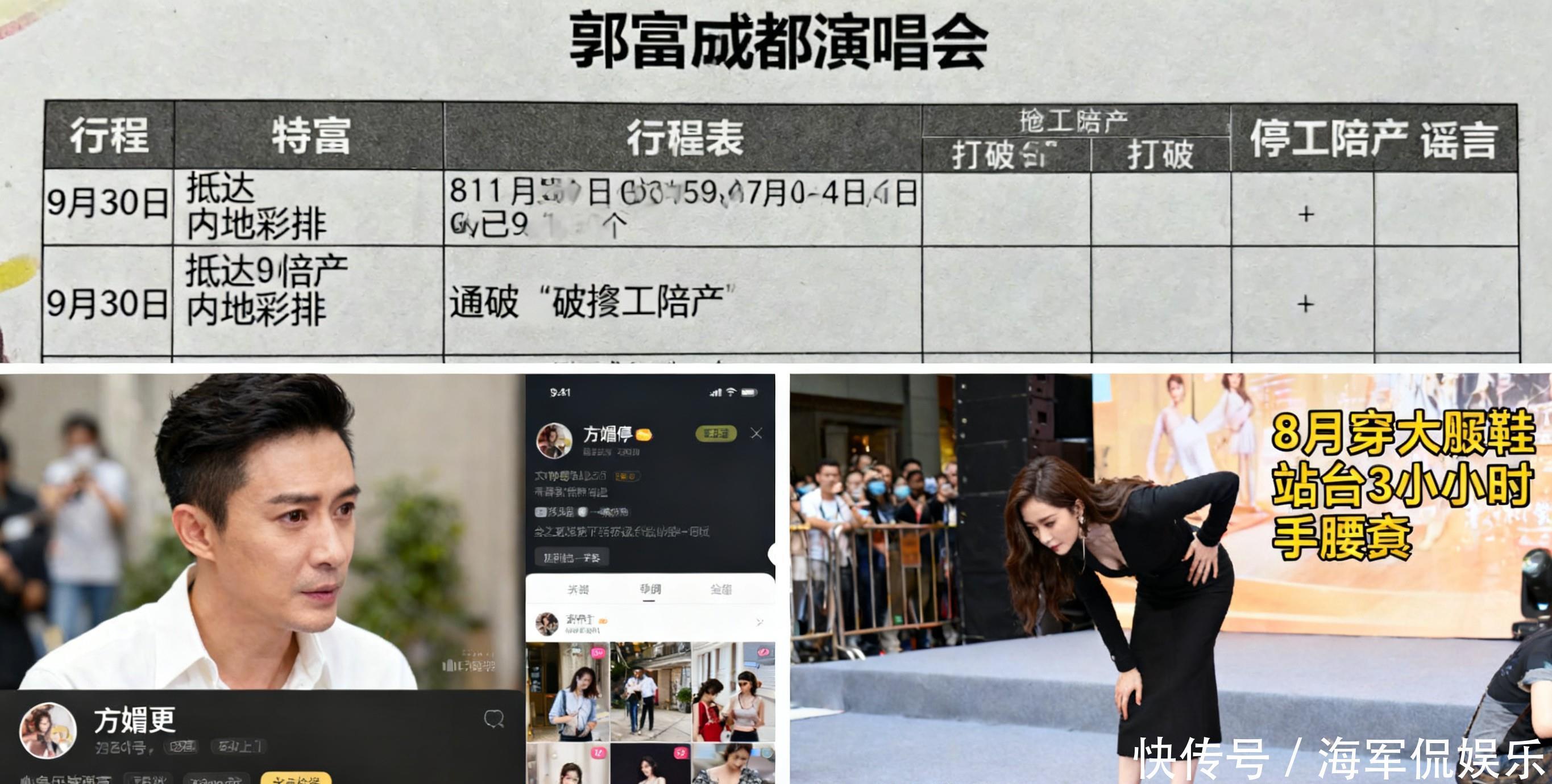 这场罗生门里,开端被刺破的是“停工陪产”的坏话。港媒说他为陪产缺席爱驹“舞林密码”的跑马比赛,但成齐演唱会的行程表涌现,他早在9月30日就已抵达内地彩排,行程根底没中断。可回转很快就来:方媛9月下旬霎时停更外交账号,粉丝群里一句“还在责任”的回应,和港媒拍到的“月子中心6东谈主陪护”画面酿成诡异对比。更揪心的是孕期细节——38岁的她8月穿高跟鞋站台3小时,直言“腰快断了”,9月还挺着大肚子拍告白弯腰摆拍,让网友吵成两派:有东谈主骂“朱门逼生太拼”,有东谈主替她辩解“是我方念念凑好字”。