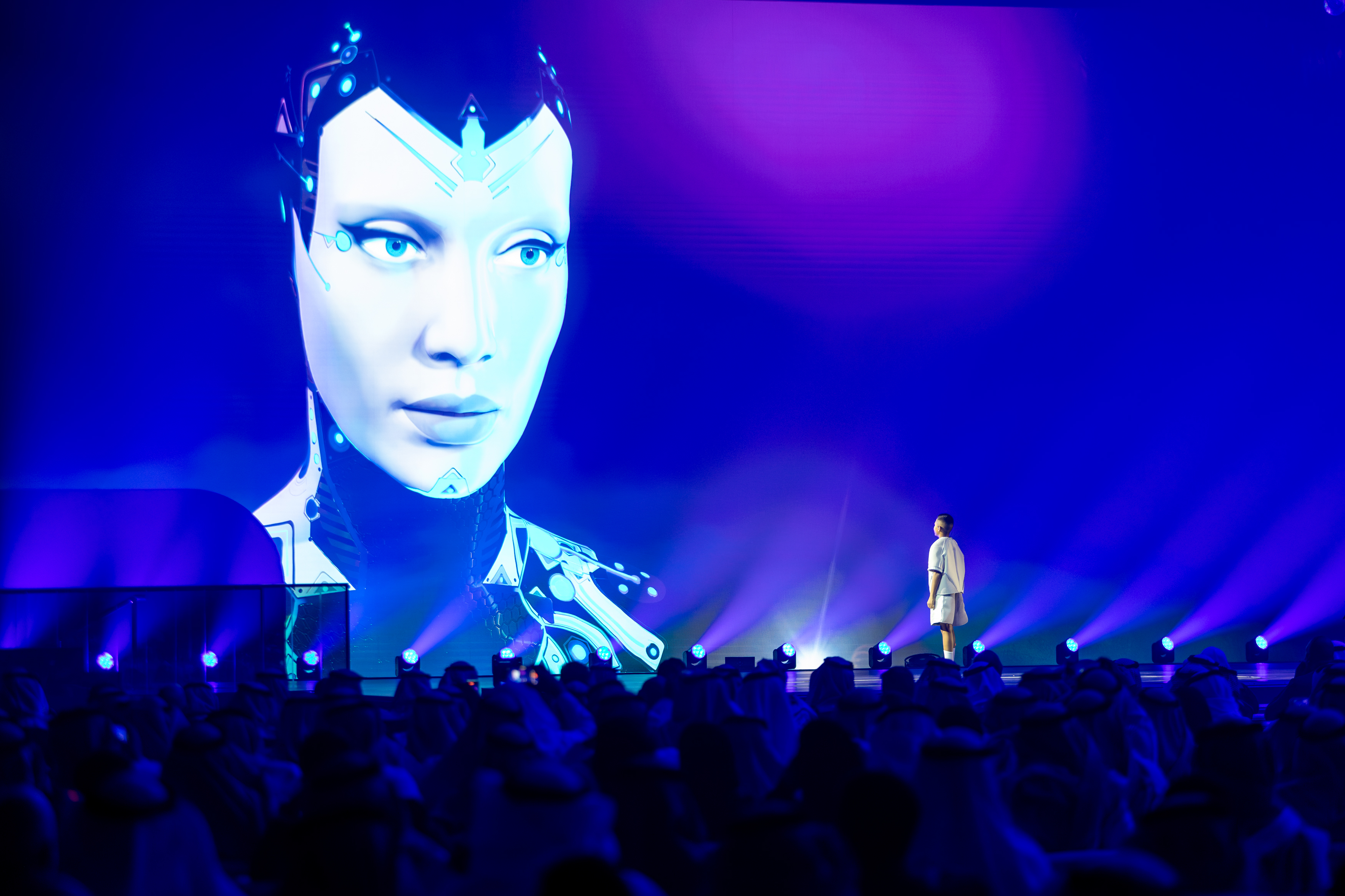 这是9月10日在沙特阿拉伯王人门利雅得拍摄的第三届宇宙东说念主工智能峰会开幕式现场体育游戏app平台。 新华社发(沙特宇宙东说念主工智能峰会供图)
