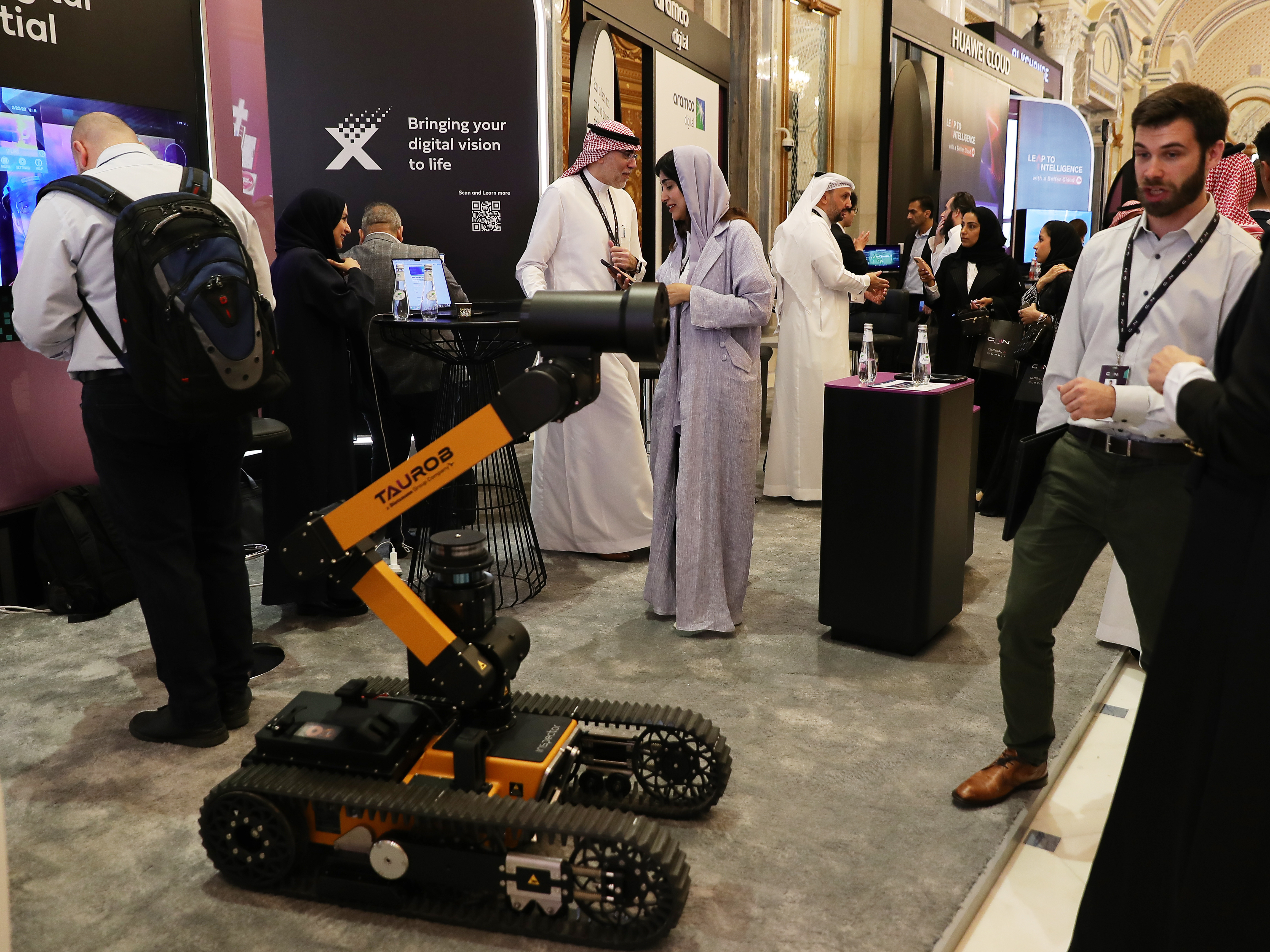 9月10日,东说念主们在沙特阿拉伯王人门利雅得举行的第三届宇宙东说念主工智能峰会现场参不雅。新华社记者 王东震 摄
