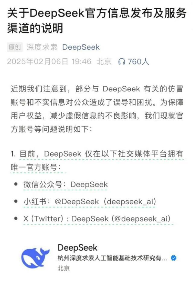 2月6日晚间,DeepSeek在其官方平台发布了进攻声明,声明强调: