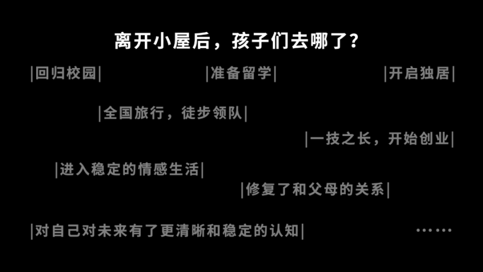 还有许多孩子,像小圆一样,从小屋离开后驱动了不一样的东谈主生。他们有的回来了校园,也有去旅行和创业的,有的驱动茕居,有的搬回家重新接纳了父母,也有延续留在家里,但内心变得更沉稳,也有了对改日的霸术……咱们为他们每一个东谈主感到兴隆和骄矜。咱们但愿告诉孩子,所谓的康复,不是坐窝成为社会认同的“好孩子”,而是迟缓来,找到最妥当我方的容颜。