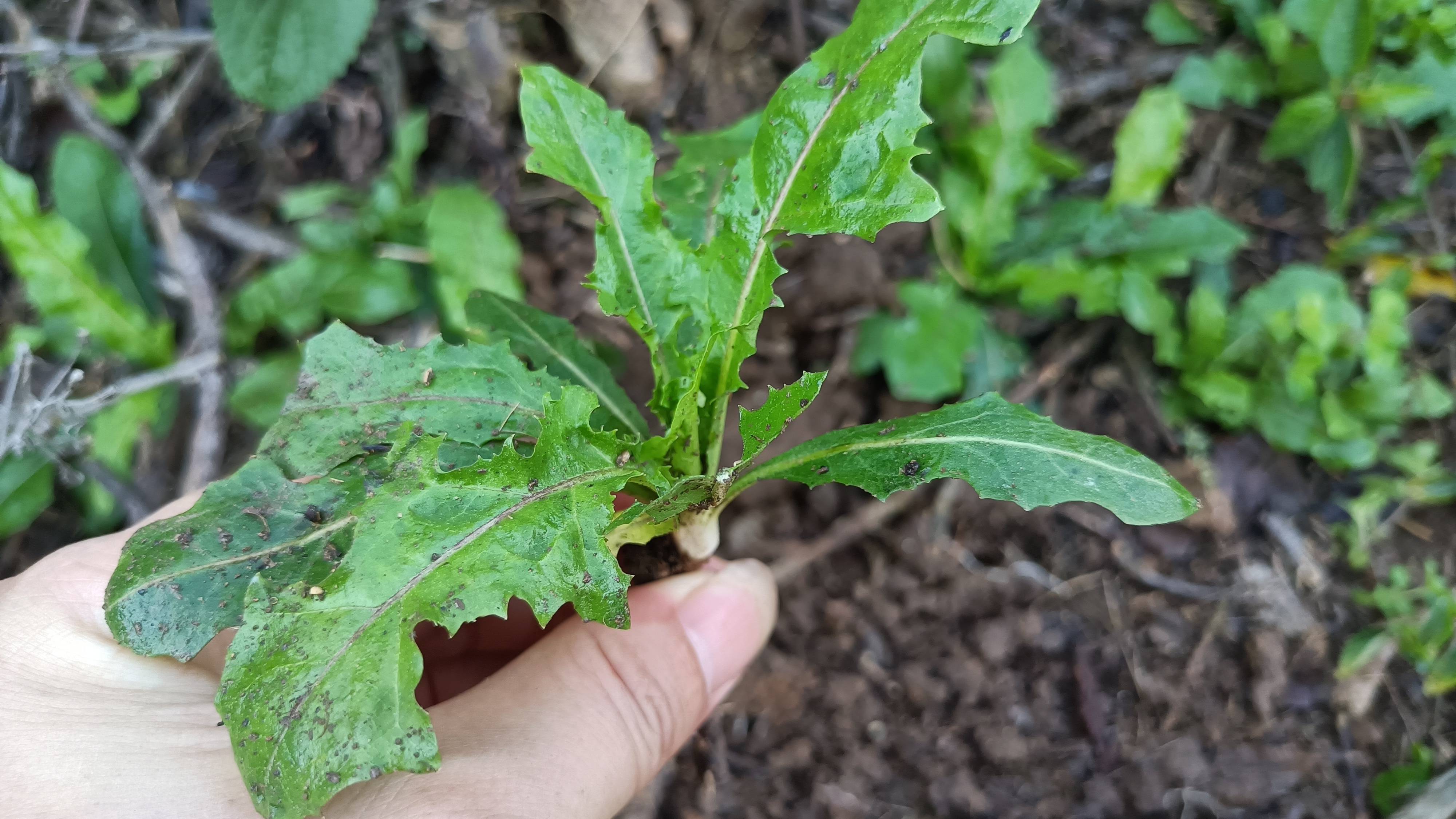 国庆假期的时候,在湖南桑梓路边看到有小根蒜,在挖小根蒜的同期,也看到了蒲公英,这个时候的蒲公英,叶子很是的嫩绿,刚刚长出来没多久。